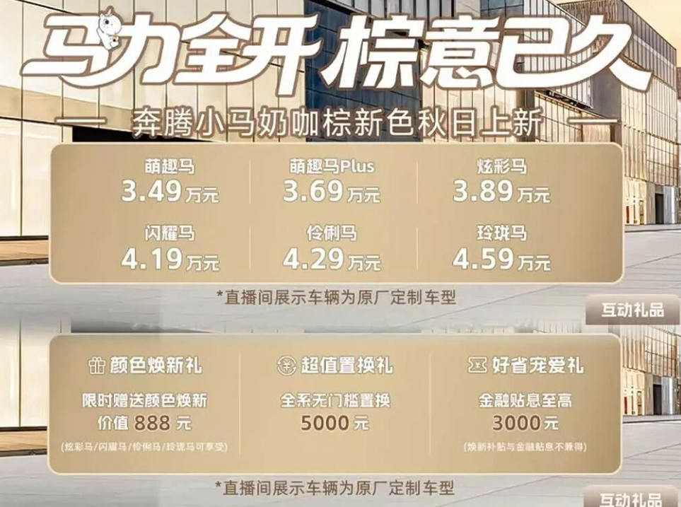 日前,我们从一汽奔腾官方获悉,旗下奔腾小马“奶咖棕”新色正式上市。目前2026款奔腾小马共推出6款车色,售价3.49-4.59万元。新车0元下订享受限时赠送价值888元新颜色焕新,还可享超值置换礼,全系无门槛置换5000元等购车政策以及3000元金融贴息,叠加国补、地补、厂补等政策至高可享2.5万元优惠,最低售价可达0.99万元。